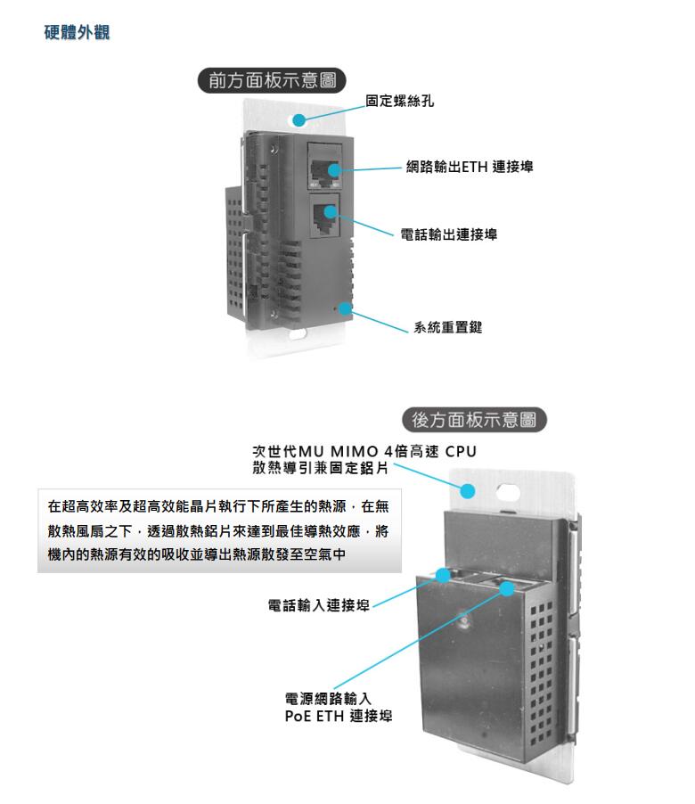 CERIO 智鼎 eXtreme 11n/ac 2.4/5Ghz 2x2 功能型嵌入式PoE無線基地台 (100mW)