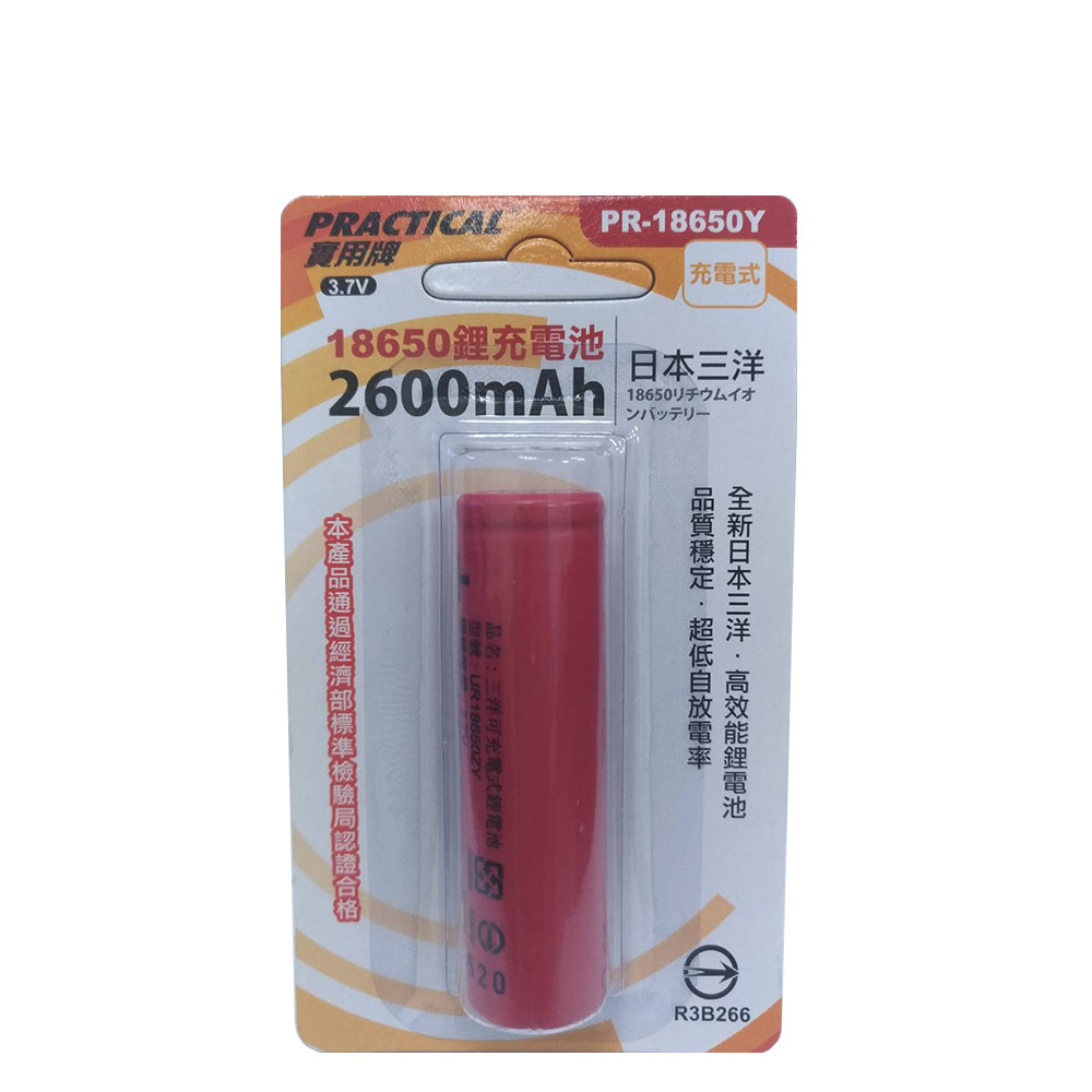 ◆商品名稱:實用牌日本三洋18650充電鋰電池2600mAh