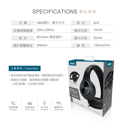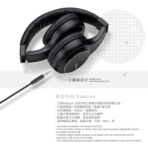 .支援Android / iOS系統之智慧手機麥克風接聽功能。
