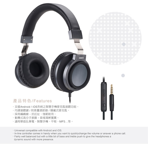 .支援Android / iOS系統之智慧手機麥克風接聽功能。