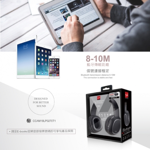 特色 ‧NCC檢驗型號: HE-S25 ‧NCC號碼:CCAM18LP0270T1 ‧通過台灣NCC協會認證。 ‧產品已投保3千萬責任險。 ‧採用最新藍牙4.2版晶片, ‧部分智慧手機可支援藍牙耳麥電量顯示。 ‧具省電模式,不使用即自動關機,省電低耗能。長效待機,可連續撥放音樂時間約4-6小時。 ‧音樂撥放與通話模式自動切換。 ‧具通話 / 來電接聽 / 音量調節 / ‧上下選曲 / 播放與暫停...等功能。 ‧全罩式設計,服貼、隔絕噪音。 ‧可支援藍牙、MICRO SD插卡、AUX音源輸入、 ‧FM廣播..等模式,一機多用。