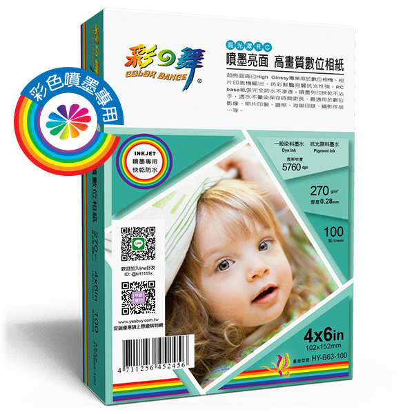 o 超亮面High Glossy專業用於數位相機、相片印表機輸出、色彩鮮豔亮麗抗光性強。