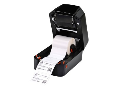 全機為貝殼式開蓋設計,1吋與0.5吋管心碳帶共用設計,5"大容量標籤紙空間,雙感應紙張偵測系統,能準確的校正紙張,內建RTC即時時鐘功能,操作面板搭配8個LED訊息顯示燈號,讓使用者容易明瞭使用,適用於商場、零售、醫療、政府機關、辦公室自動化、倉儲管理、物流標籤等應用。